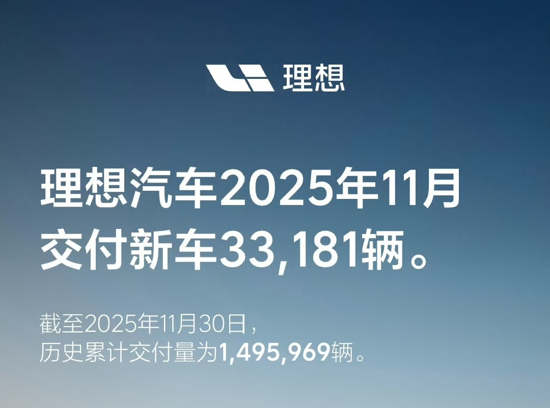 理想汽车数据显示,公司11月交付33181辆新车,环比增长4.45%,同比下降31.92%。根据“蔚小理”公布的四季度交付指引,理想目标交付10-11万辆,12月至少要交付约3.5万辆;小鹏目标交付12.5-13.2万辆,12月至少要交付约4.63万辆;蔚来目标交付12-12.55万辆,12月至少要交付约4.33万辆。