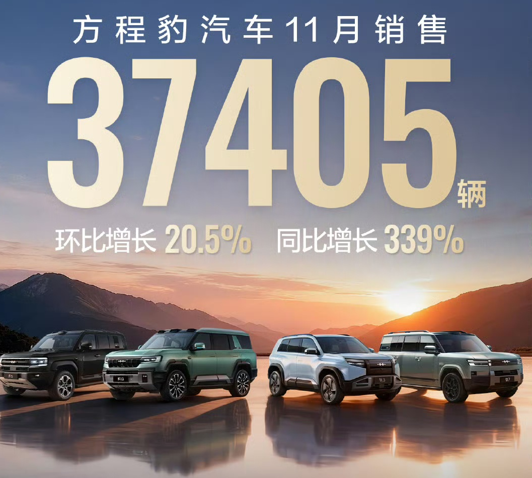 其他新品牌中,比亚迪数据显示,旗下的方程豹和腾势均实现正增长,11月销量分别为37405辆和13255辆,分别同比增长339%和33%,环比增长21%和31%。长城数据显示,旗下魏牌也实现了销量增长,11月销量同比增长81%至12763辆。